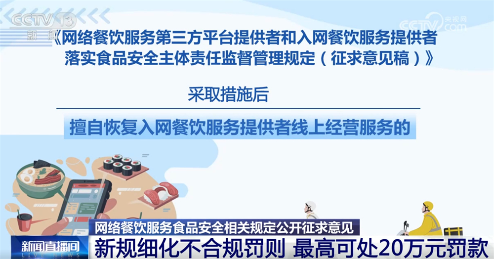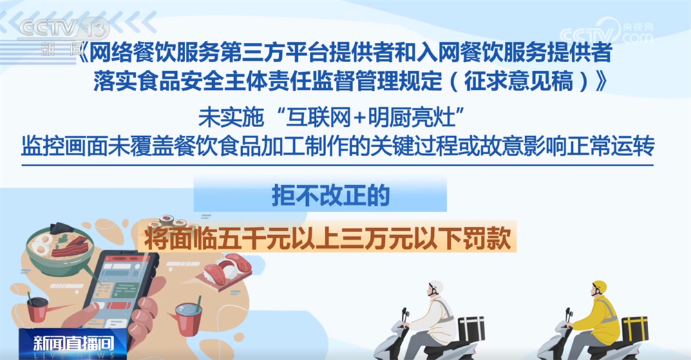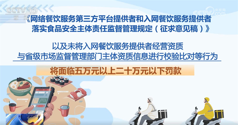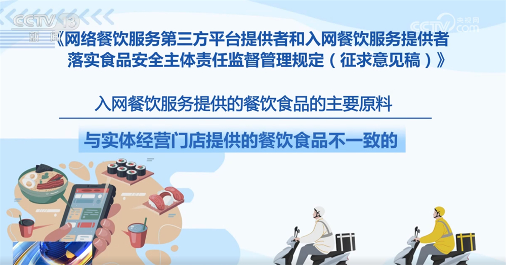 记者16日从市场监管总局领会到,为进一步加强收集餐饮办事食物平安监管,《收集餐饮办事第三方平台供给者和入网餐饮办事供给者落实食物平安从体义务监视办理(收罗看法稿)》面向社会公开收罗看法。这份办理收罗看法稿有哪些亮点?一路来领会。收罗看法稿明白了平台供给者收集餐饮办事食物平安从体义务,要求对入网餐饮办事供给者的运营天分、加工制做、卫生等进行监测和抽查。每月线下抽查入网餐饮办事供给者的比例不低于百分之五,监测和抽查成果留存备查,留存刻日不得少于2年。平台供给者该当将入网餐饮办事供给者运营天分取省级市场监视办理部分从体天分消息进行校验比对,校验不成功的不得上线运营。